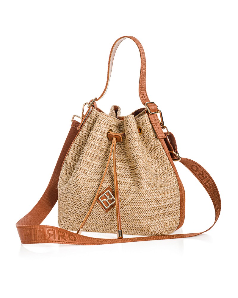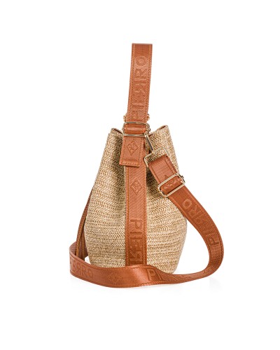 Γυναικεία τσάντα πουγκί κατασκευασμένη από φυσική οικολογική ψάθα και οικολογικό δέρμα από τη Natural Straw Collection. Μπορ 400 εί να κρατηθεί στoν ώμο αλλά και χιαστί με τον μακρύ αποσπώμενο ιμάντα silk touch.Ο ιμάντας ρυθμίζεται με αυξομειωτή στο κατάλληλο επιθυμητό μήκος.Κλείνει με ασφάλεια ενώ διαθέτει και εσωτερική τσέπη με φερμουάρ.