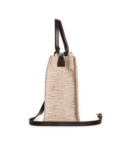 Αυτή η τσάντα τύπου tote είναι ο ιδανικός συνδυασμός λειτουργικότητας και υψηλής αισθητικής. Με ένα μοναδικό μοτίβο που θυμίζει "animal print" σε γήινες αποχρώσεις, αποτελεί μια σοφιστικέ επιλογή για τη γυναίκα που θέλει να ξεχωρίζει στην καθημερινότητά της.