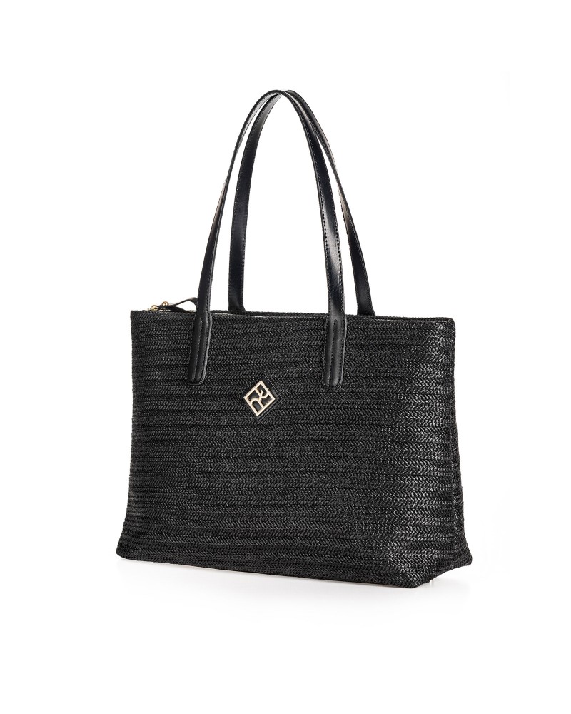 Γυναικεία τσάντα κατασκευασμένη από φυσική ψάθα και οικολογικό δέρμα. Ιδανική επιλογή για όλες τις ώρες της ημέρας μπορεί να κρατηθεί άνετα στον ώμο ενώ διαθέτει εσωτερικό χώρισμα-τσέπη με φερμουάρ για την καλύτερη τακτοποίηση των αντικειμένων.