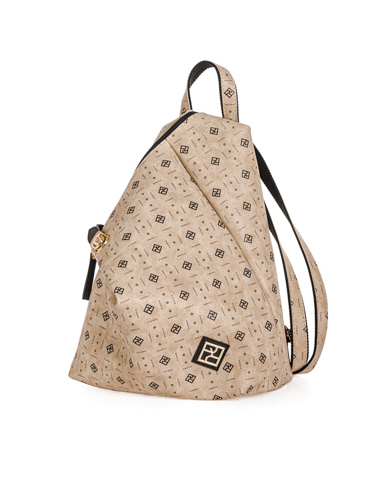 Γυναικείο σακίδιο της εταιρείας Pierro Accessories κατασκευασμένη από οικολογικό δέρμα σε ταμπά χρώμα από την Monogram Limited Edition Collection. Ιδανική επιλογή για όλες τις ώρες της ημέρας. Το κύριο μέρος της τσάντας κλείνει με φερμουάρ ενώ διαθέτει τσέπη εσωτερικά για την καλύτερη τακτοποίηση των αντικειμένων.